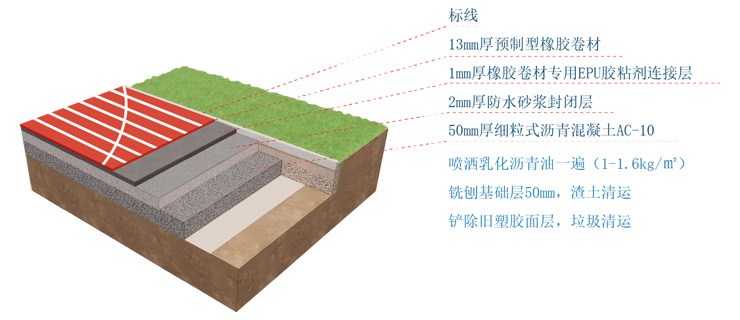 Super-Elastic Natural Rubber (NR) + Ultra-Tough Styrene-Butadiene Rubber (SBR) = OutstandingSports Performance; Super-Weather-Resistant EPDM(Ethylene Propylene Diene Monomer) + ImportedPigments & Anti-Oxidation/UV-Resistant AdditiveSystem = Long-Lasting Color Retention.